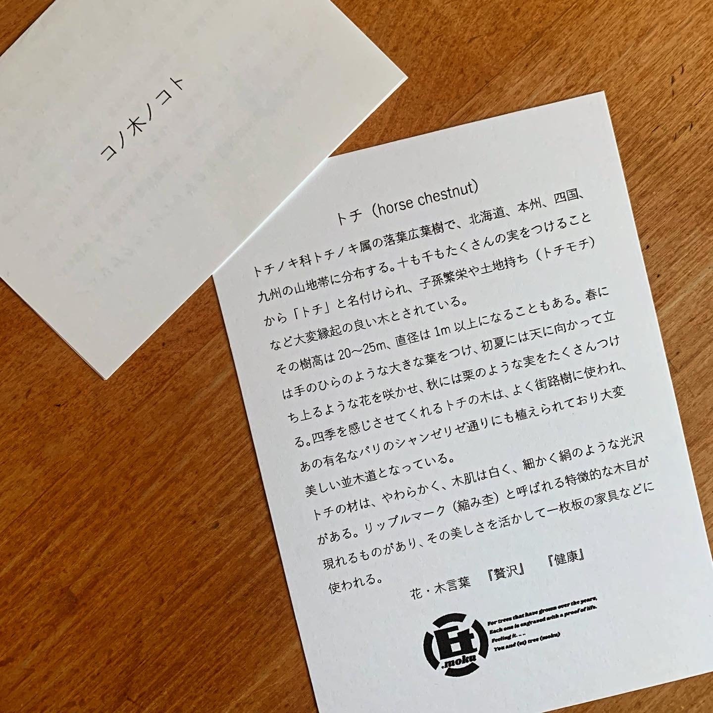 必ず木のストーリーを綴った「コノ木ノコト」というカードが
