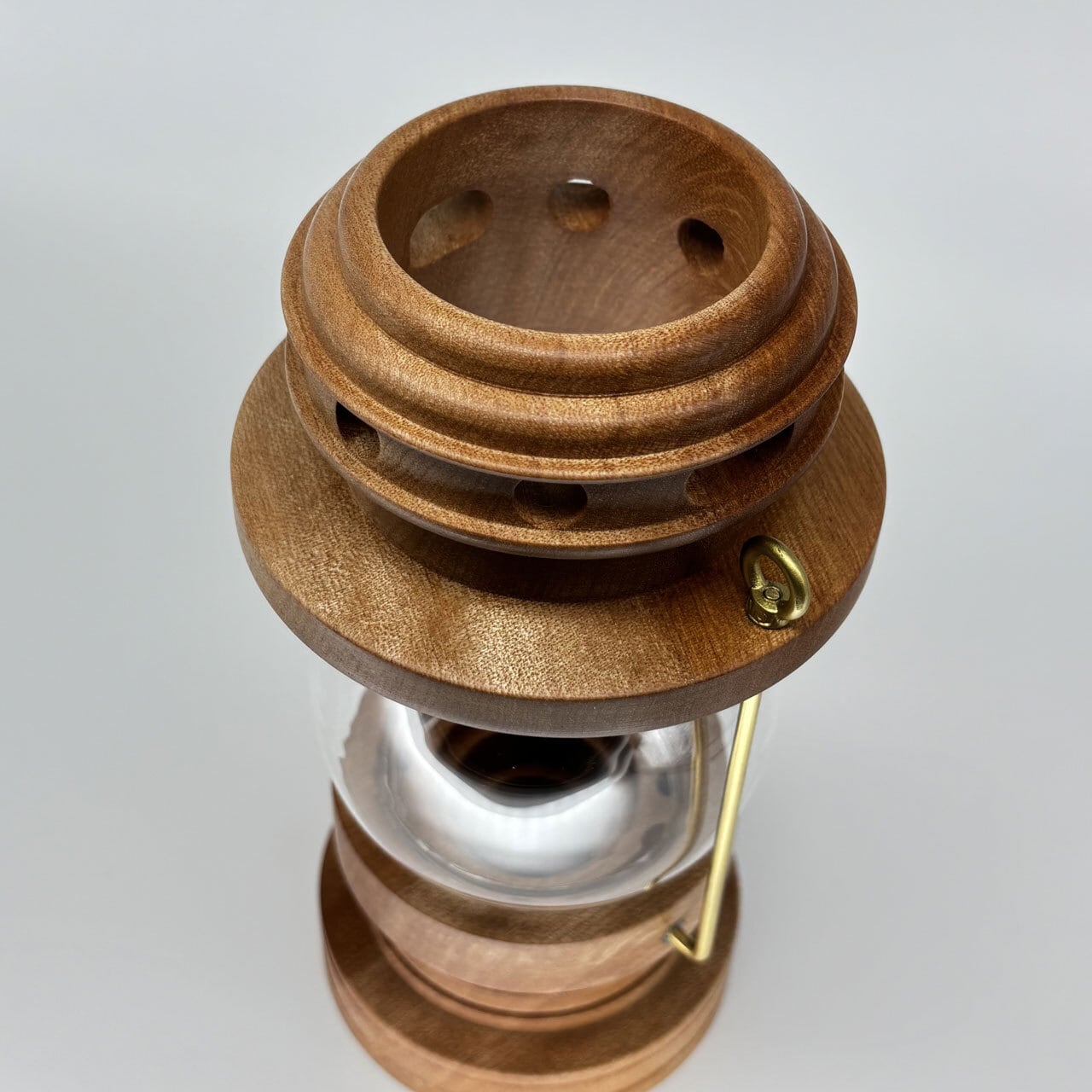 このランタンは、国内外の貴重な銘木を1つ1つ削り出して製作しています。材料は無垢の木材です。この世に同じ木目同じ色は存在しません。オンリーワンなランタンなのです。